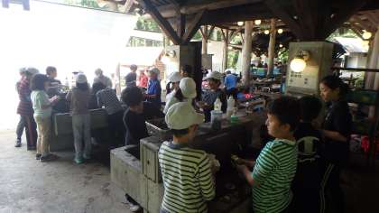 野外炊事でケガをすることもなく,子どもたちはみんな元気です。この後,研修室で最後のふりかえりを行います。忘れ物はありませんか?残していいのは,思い出だけですよ。