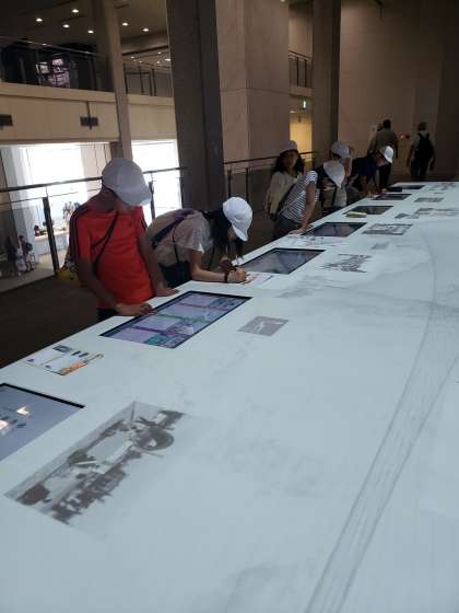 昼食を済ませ,子どもたちは平和記念資料館を見学中です。子どもたちは全員元気です。真剣な表情で,黙々と展示物を見たり,メモをとったりしています。広島に投下された原子爆弾の威力や被害の様子を目の当たりにし,言葉にならない思いを胸に抱きながら戦争について熱心に学んでいます。