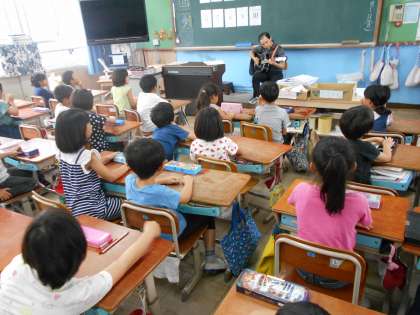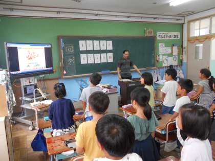 今年度1回目は,ALTのニコラスさんに来ていただきました。あいさつの言い方,数の数え方などを学習しました。最後になんと!ニコラス先生の生歌「カントリーロード」を聞くことができました。ありがとうございました。