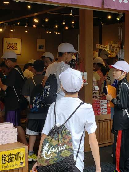 倉敷にやってきました。白壁と瓦屋根が印象的な建物が軒を連ねる倉敷美観地区は,美しい堀割りと柳並木,穏やかな倉敷川の流れ…古き良き時代の街並みが保存されています。でもそんなのおかまいなしに,子どもたちは夢中でお買い物です!お家の人のことを浮かべながら,お財布と相談してお土産を選んでいました。