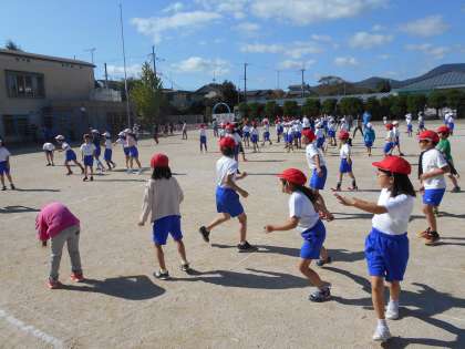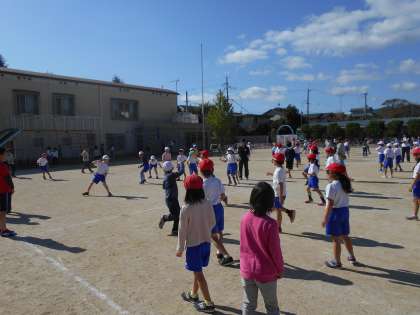 運動委員会の子どもたちが,中間休みに実施してくれました。秋晴れのさわやかな空気の中,子どもたちの歓声が飛び交いました。