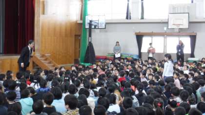 不審者を確保し,安全を確認した後,校長先生と北署の方から体育館で話をうかがいました。