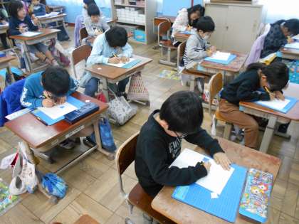今日は初めてカッターナイフを使いました。安全な使い方を確認し,実際に厚紙を切って練習しました。すでにお家で使っている子もいたようですが,ほとんどの子は注意をよく聞いて,慎重に作業していました。うまくできるといいね。