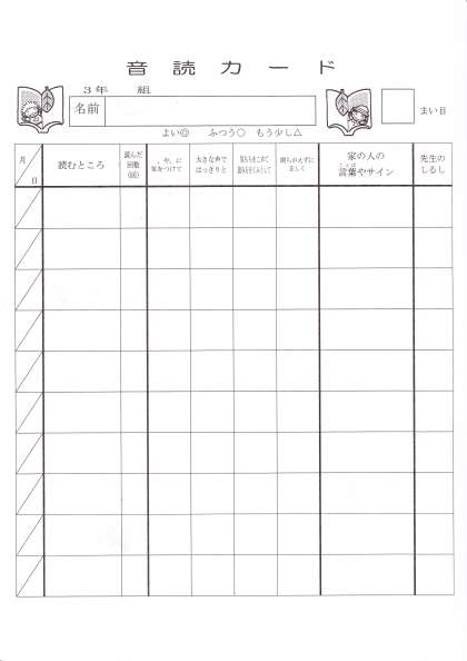 音読カードは,音読をすることになっている日に,家の人に音読を聞いてもらって,音読カードに,自分で書かずに.家の人に書いてもらってくださいね。