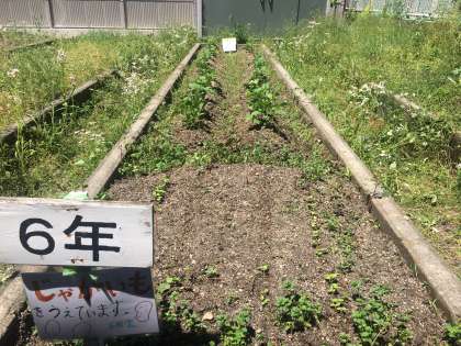 今日は先生達で雑草抜きをしました。今日は気温が高く暑かったです。