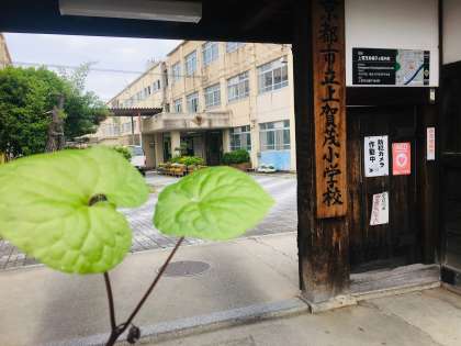 上賀茂小学校の正門横でも,フタバアオイが青々と茂っています。