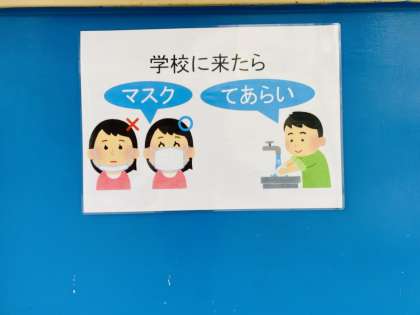 てあらいとマスクの絵をみんなの見やすいところに貼ってあります。