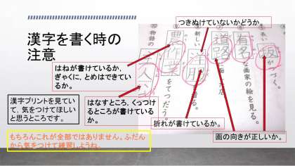 前回,漢字かくにんのプリントをしました。自分たちでがんばりましたね。