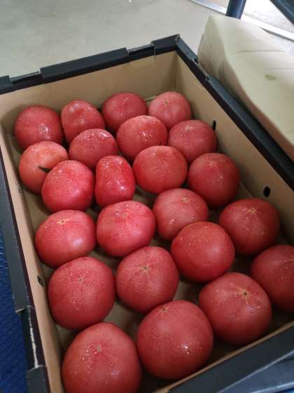 今朝は給食室にピッチピチのおいしそうなトマトが納品されました。