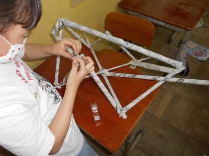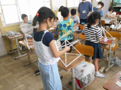 図工では,新聞紙を細く丸めてつなぎ,何ができるかという学習をしました。それぞれが思い思いにいろいろな面白そうなものを作っていました。