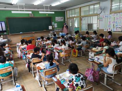 今日は1年2組のみんなと一緒に給食をいただきました。