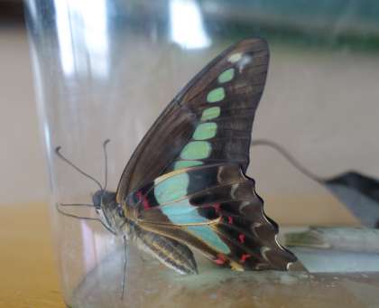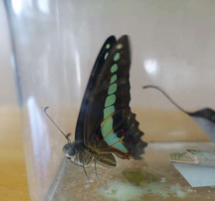 羽もしっかりかわいて,虫かごの中で元気にはばたいていました。