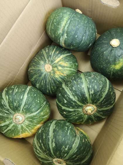 朝にはおいしそうな「かぼちゃ」と「ゴーヤ」が届いていました。
