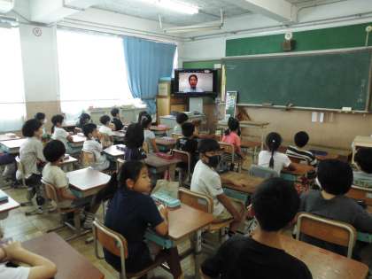 1日(木)の朝会と児童集会は初めてzoomでの実施となりました。子ども達はそれぞれの教室で校長先生のお話を聞いたり,児童会からのお知らせを聞いたりしました。初めての取組とあって少し戸惑った部分もあると思いますが,子ども達はテレビから流れてくるお話にしっかりと耳を傾けていました。今年度はこういった形での集会が多くなります。新しい生活様式の中で,できる限り子ども達にとっていい取組ができるようアイデアを出し合っていきたいと思います。