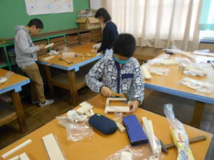 図工室では,「ギコギコ」「トン,トン,トン」とリズムのいい音が響いていました。