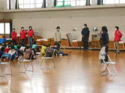 「横断歩道で」,「バス停で」,「迷っているとき」の3つの場面でどんな声をかけてあげるとよいかということを寸劇を通して教えていただきました。