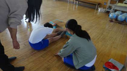 新体力テストに取り組んでいます。長座体前屈や反復横跳び,立ち幅跳びなどの種目に取り組みました。お互いに記録を計測しあいながら,進めていきます。昨年の記録よりどれぐらい伸びがあったでしょうか?