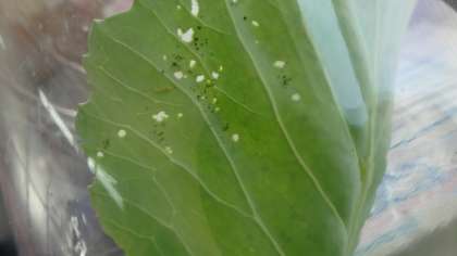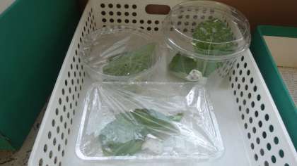 理科で,モンシロチョウのたまごを観察している3年生。気が付けば,たまごから小さな小さな幼虫が。キャベツも所々に穴があいていて,幼虫が食べていることがわかります。みんな気が付いているかな。