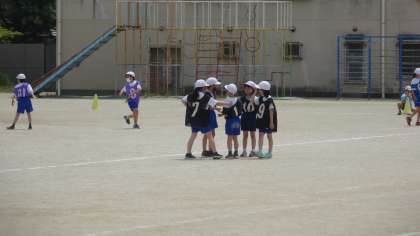 リレーの学習です。チームの時間には,走る順番を相談したり,バトンパスの練習をしたりして,チームの力を高めています。終わるころには,みんな汗をいっぱいかいています。しっかり力を出し切る3年生です。