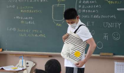 トートバッグを作ります。今日は,先生が実際に作る様子を撮影した動画を見て,これからの学習のイメージを膨らませました。みんなそれぞれにこだわりの作品ができそうです。