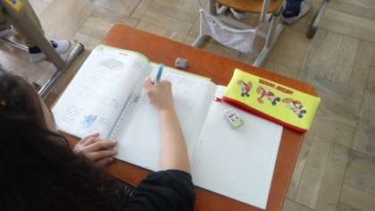 わり算を学習してきた3年生。今日はまとめの問題でこれまでの学習を振り返ります。早く正確に問題に取り組み,できたら丁寧に見直しを自分でしています。