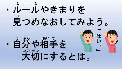 5月は憲法月間です。ルールやきまりがなぜあるのか,自分や相手を大切にするというのはどういうことなのか,今一度じっくりと考えるきっかけになったらと思っています。