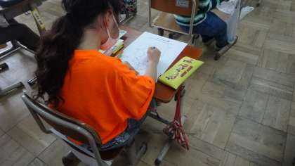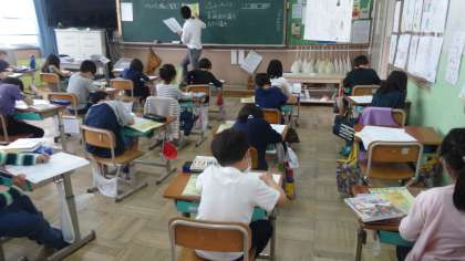 京都府の土地の様子を学習しています。みんなが住む上賀茂地域は京都府のどこら辺に位置するのか,また,どのような川が流れているのか等,色で塗り分けながら調べていきました。