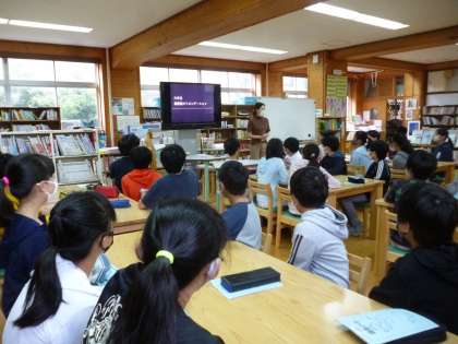 6年生は「中学生になることを見据えて…」ということで,地域の施設,世界の図書館,スマートフォンと自分,脳と本…などいろいろな視点からお話をしてくださいました。