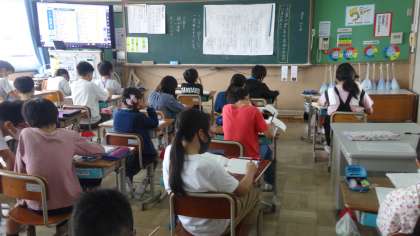 国語の時間,決められた字数の中で要旨をまとめる学習をしました。高学年になると,決められた字数の中で,大事なことを落とさずに書きまとめていくことが大切になっていきます。繰り返し学習していく中で,書く力もつけていきたいです。