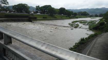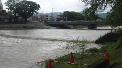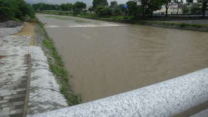 御薗橋,そして上賀茂橋付近から撮影しました。本日午後2時頃の賀茂川の様子です。昨日からの大雨で,水位は上昇しています。明日から休日になりますが,安全に十分気を付けて過ごしてほしいです。