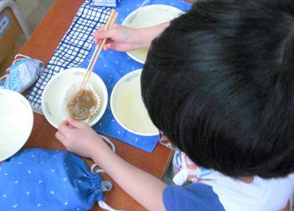 1年生には「初ういろう」の子も多く,恐る恐る食べる姿も…