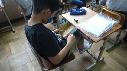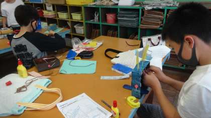 クランクを生かした動く作品が出来上がってきました。動きがスムーズになるよう,微調整する子もいました。満足いく作品が出来上がってきているようです。