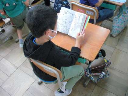 すると…自分が食べ終わると,席で静かに読書をして「ごちそうさま」を待つ姿が!!