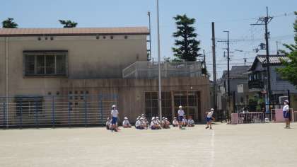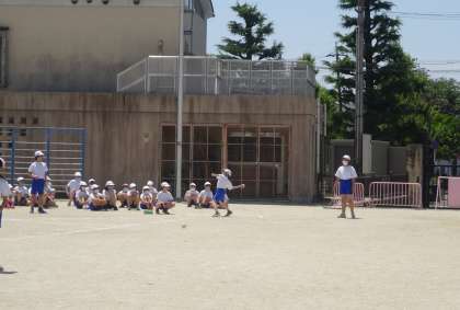 ソフトボール投げの様子です。今日もとても暑い一日となりましたが,力いっぱい投げて記録に挑戦していました。