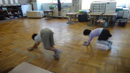 黙々と掃除に取り組んでいます。床拭き,掃き掃除,机拭きなど,それぞれが役割をもち,自分のすべきことをしっかりとやり遂げています。