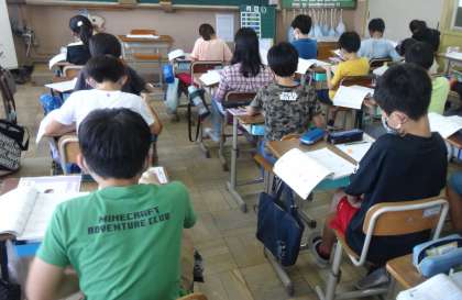 分数のわり算の計算について学習してきた6年生。今日は復習問題でこれまでの学習が身についているかを確かめました。