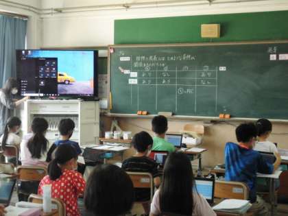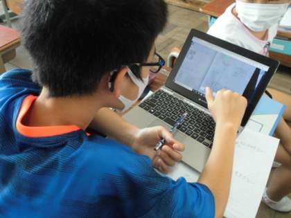 理科の学習では,タブレット端末を使って学習を進めています。ロイロノートで各自のノートをタブレット端末で共有し,考えを交流しました。これからも効果的な使い方をできたらと考えています。