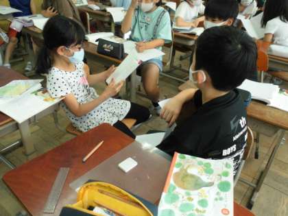 「一つの花」を読み進めています。それぞれの場面で登場人物の心情を考え,グループで意見交流をしています。