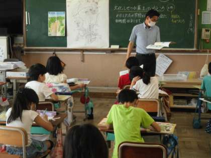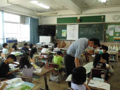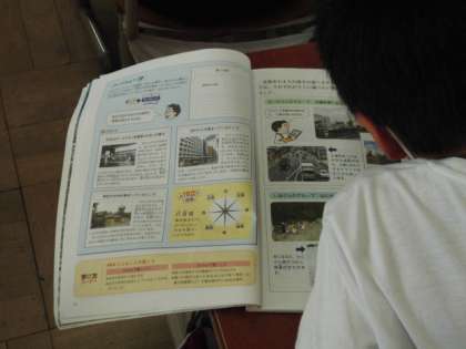 今日は私たちの住む上賀茂から見て,京都市にある施設はどこに位置しているかを考えました。方位を使ったり,通りの名称を使ったりして,一生懸命説明しています。