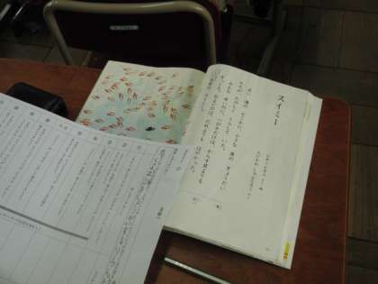 「スイミー」の学習が始まりました。2年生の国語の教科書にずっと前から登場する有名なお話です。今日は挿絵も見ながら,どんなお話の流れになっているかをみんなで確かめました。