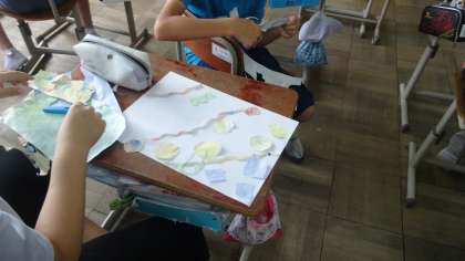 それぞれ自分自身の「心のもよう」を絵で表現します。それぞれの心の内はどのようになっているのでしょうか。みんな思い思いに表現しています。