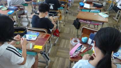 フェルトを使っての作品作りもほぼ完成です。ボタンを付けるのに苦労している様子がありますが,みんな上手になってきました。おうちでも,自分で小物作りにチャレンジするのもいいかもしれませんね。
