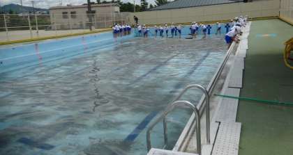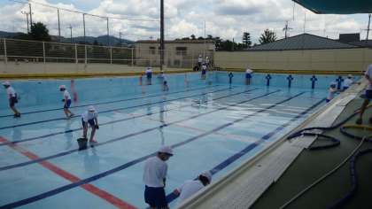 昨年度は実施できなかった水泳学習。今年度は,実施回数や学習の進め方に制限はありますが,何とか実施できる見通しです。プール開設に向けて,6年生が頑張ってプール掃除をしてくれました。