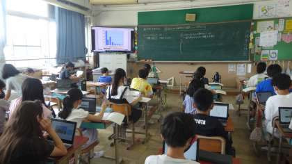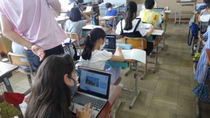 暖かい地方の暮らしについて学習しています。暖かい地の代表ともいえる沖縄について,タブレット端末を使って調べました。サトウキビなどの特産物や沖縄の暮らしぶりについて知ることができました。