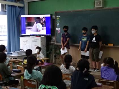 6年生は,総合的な学習の時間に調べまとめたことを,3・4年生に向けて発表しました。下級生にとっては6年生はあこがれの存在です。発表する姿,口調,プレゼン,すべてが見本となります。6年生にとっても,しっかり発表しないといけないという,いい意味での緊張感もあり,自分自身の力を高めていくことにもつながります。