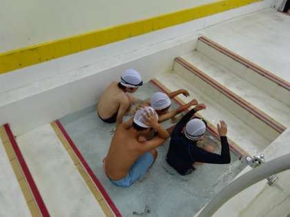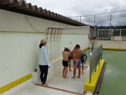 4年生も今日から水泳学習がスタートしました。今年度は感染防止対策をとりながらの水泳学習になります。密を避けるために腰洗いやシャワーは4人ずつ入ります。また,プールサイドも間隔をとって座ります。マスクを外しての学習になるので,安全にも気を付けながら,尚且つ,静かに学習を進めています。