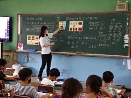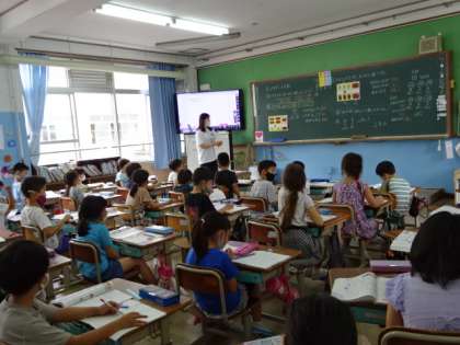 「100をこえる数」の学習です。10のかたまりがいくつあるのかをもとにして考えていきます。学習する数のけた数も大きくなってきましたが,一つ一つ確認しながら学習を進めています。