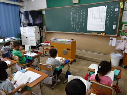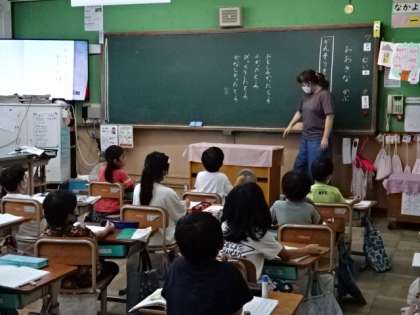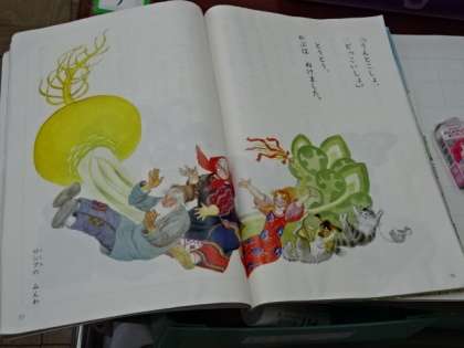 「おおきな かぶ」をみんなで読んでいます。有名なお話で,みんなで「うんとこしょ。どっこいしょ。」と声を掛け合いながら楽しく読んでいます。