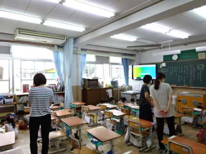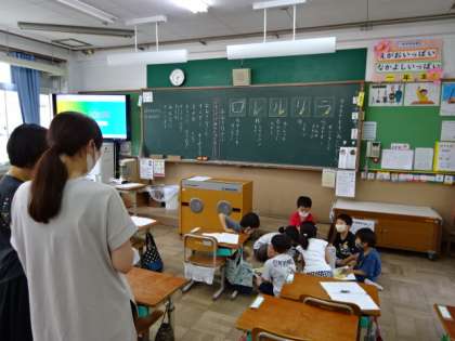 今日は上賀茂幼稚園,上賀茂こども園の先生に来ていただき,1年生の教室を授業参観していただきました。1年生の子たちにとっては,年長さんの時の先生の訪問。とても気恥ずかしそうに,でも嬉しそうにして,勉強している姿を参観してもらいました。