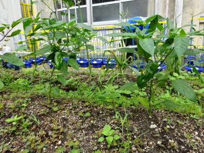 ナス,ピーマン,とうもろこし。2年生が育てている夏野菜が大きく育ってきました。
